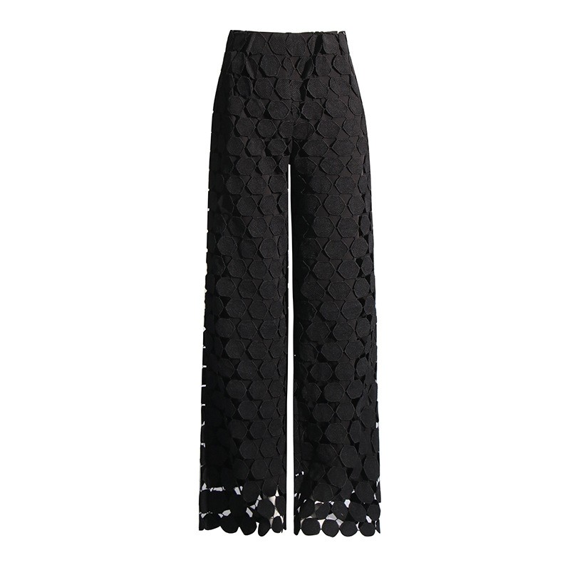 Summer High waist fashion loose elegant high street sexy cut-out lace women's pants & trousers