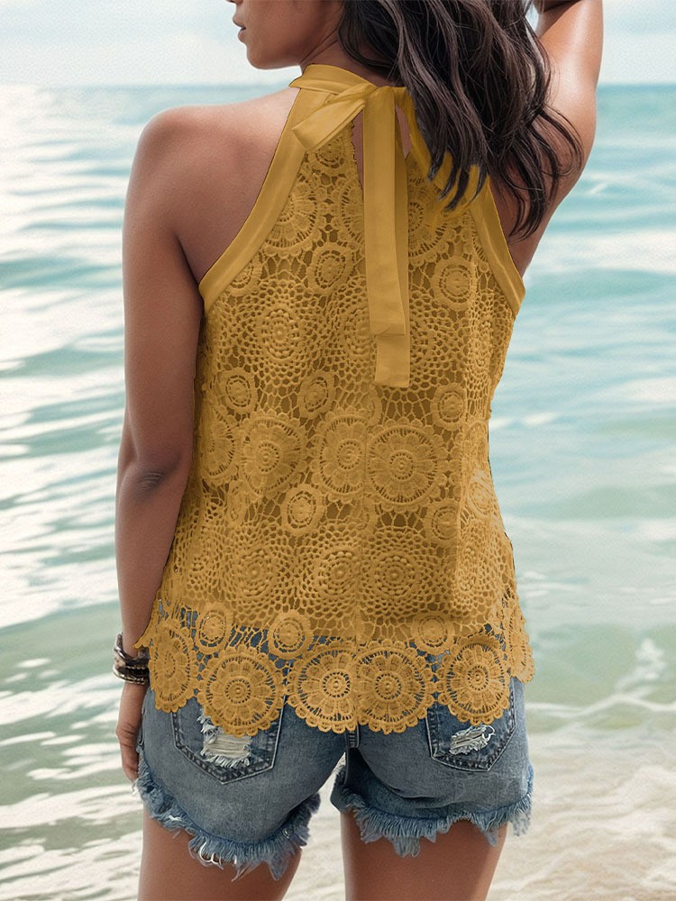 Customization Women Sexy Lace Sleeveless Solid Color Top
