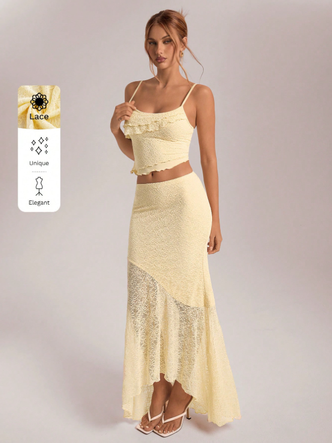 Lace Sleeveless Top Long Fishtail Skirt Sexy Female 2pcs Suits