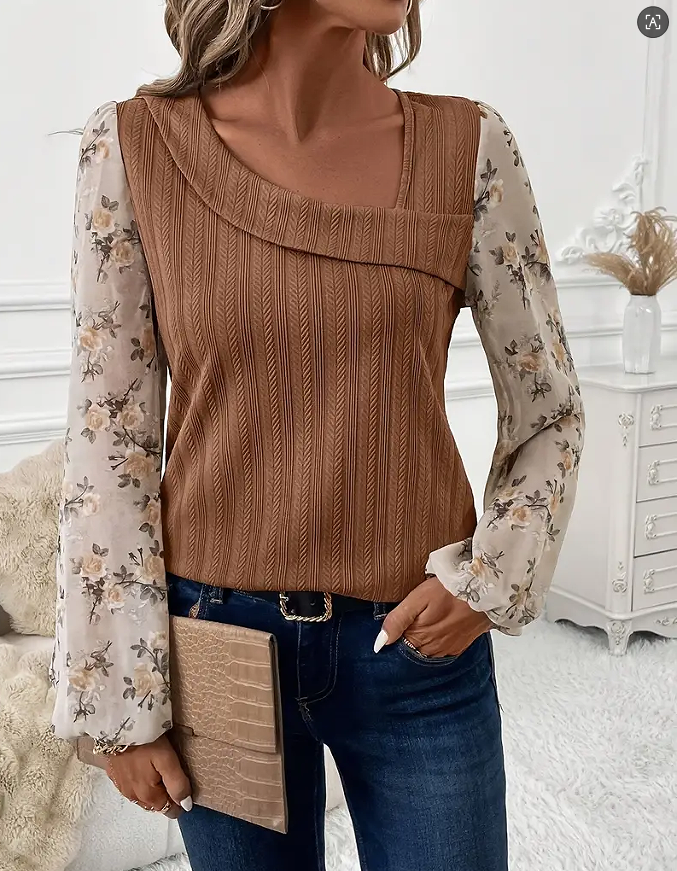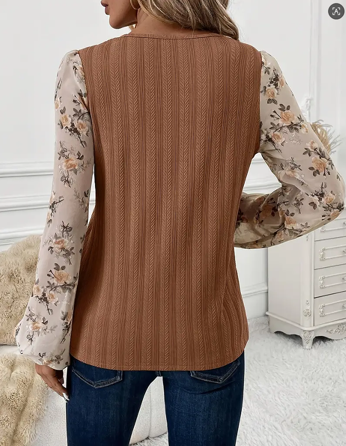 Printed Chiffon Sleeves Jacquard Elegant Office Blouse