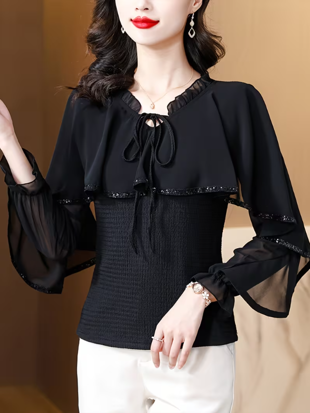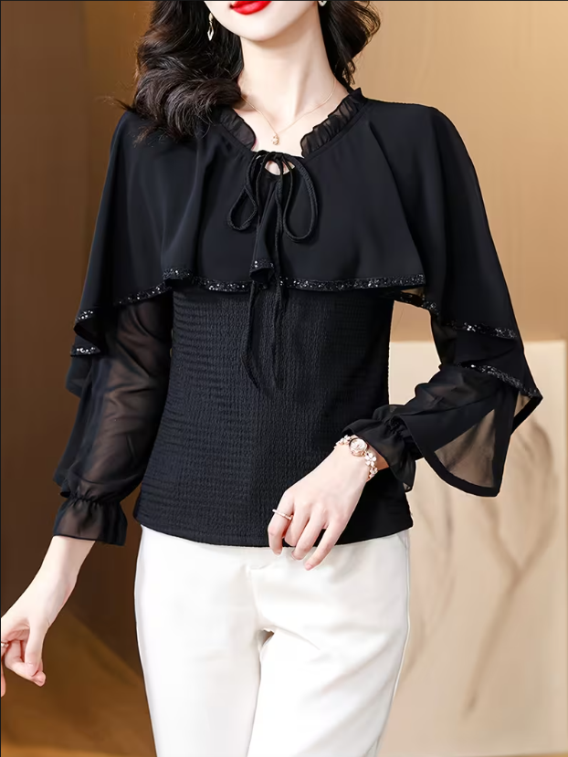 Spring Viscose Chiffon Lace Elegant Shirt For Ladies