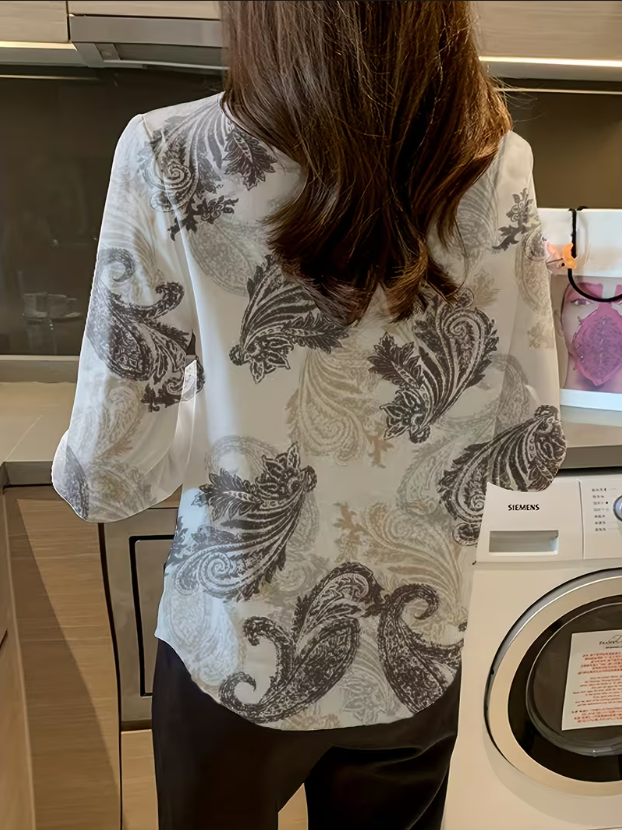 Spring Autumn Digital Printed Thick Chiffon Elegant Shirt