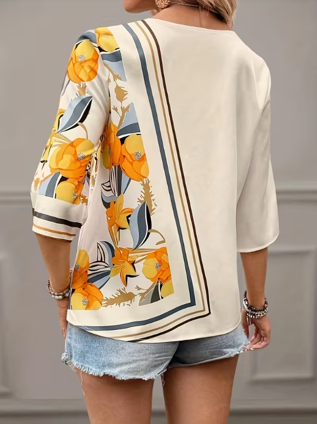 Ladies Summer Flower Printed Thick Chiffon Elegant Shirt