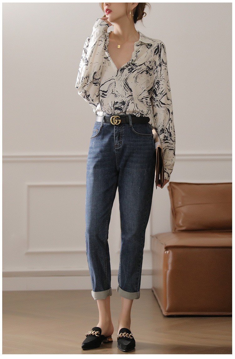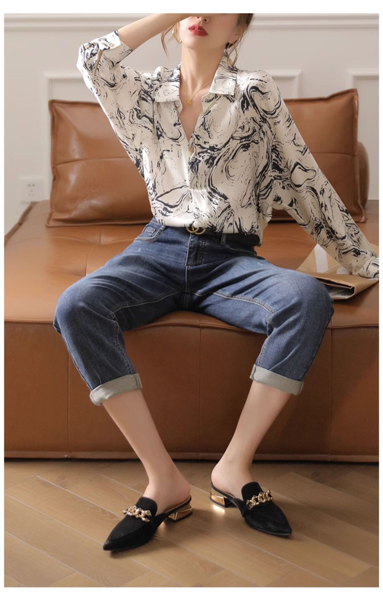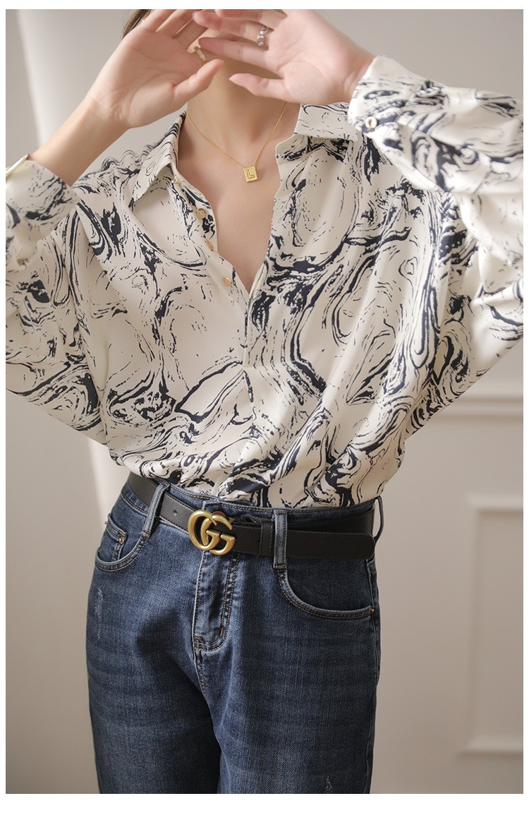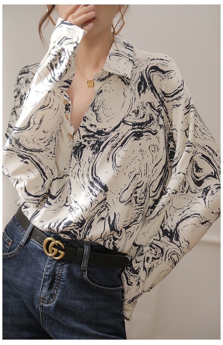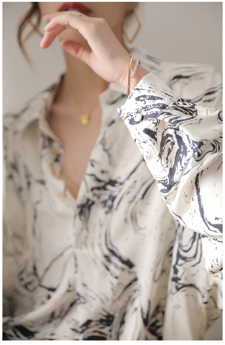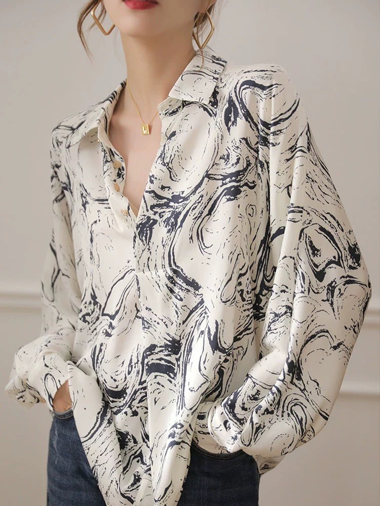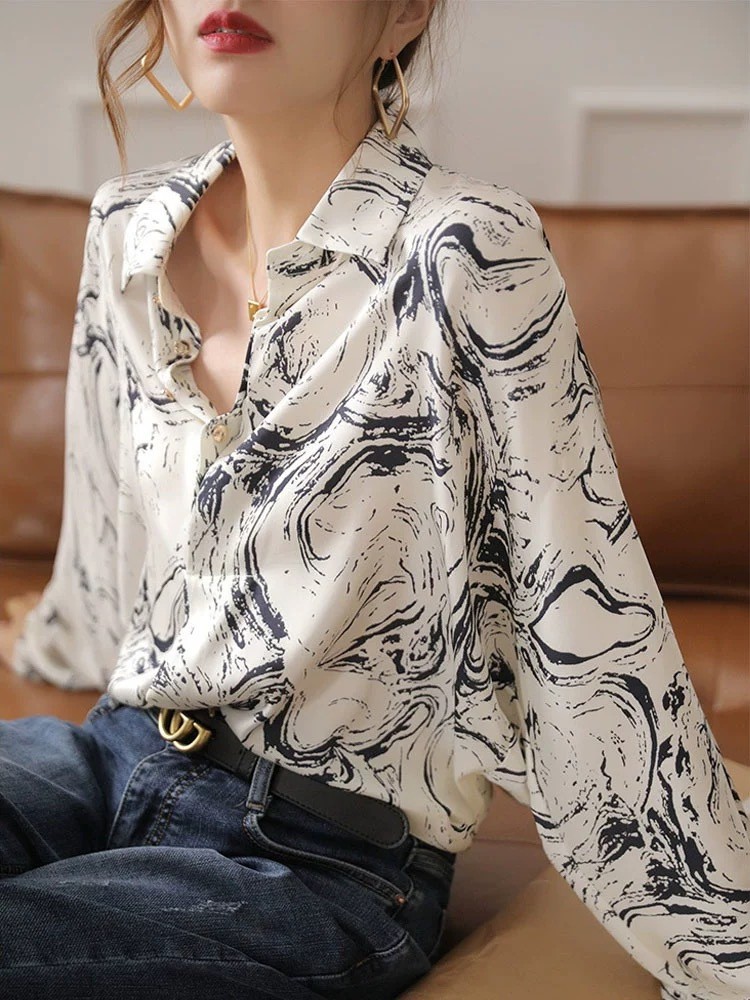 Spring Autumn Printed Thick Chiffon Elegant Shirt