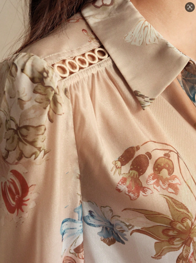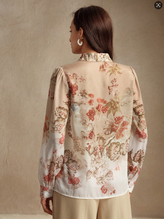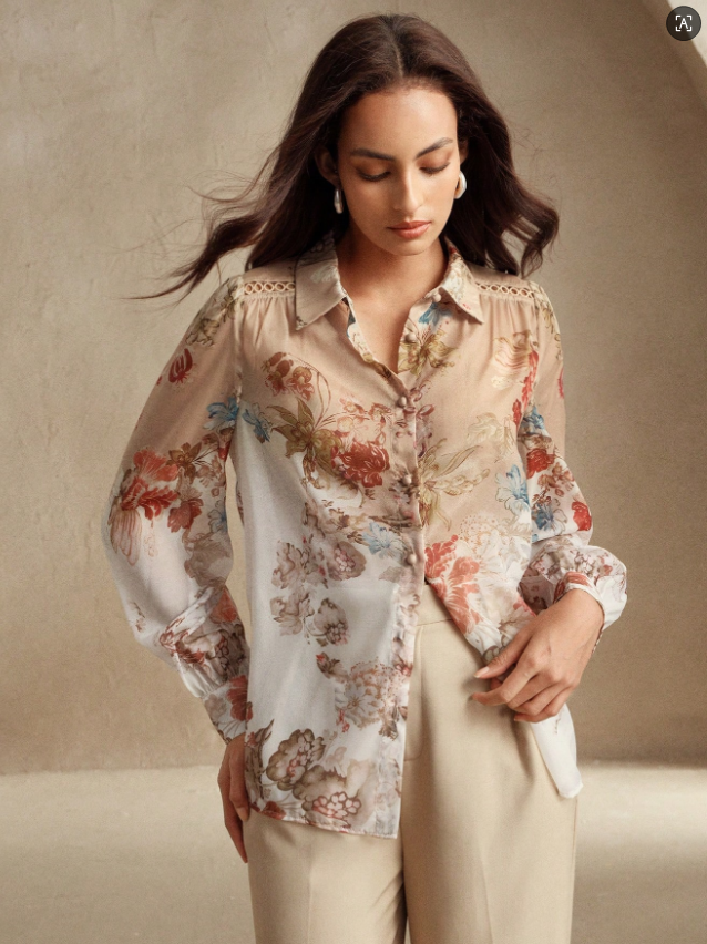 Flower Printed Chiffon Elegant Office Shirt For Ladies