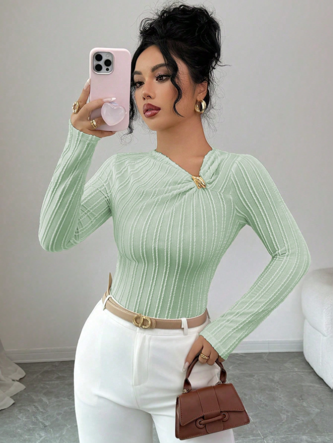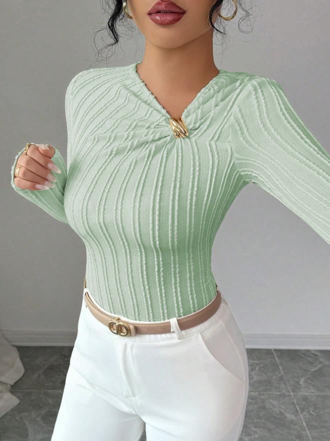 Spring New Viscose Jacquard V Neck Long Sleeve Sexy Blouses For Ladies