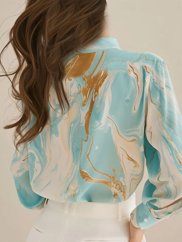 Spring Printed Chiffon Elegant Office Shirt For Ladies