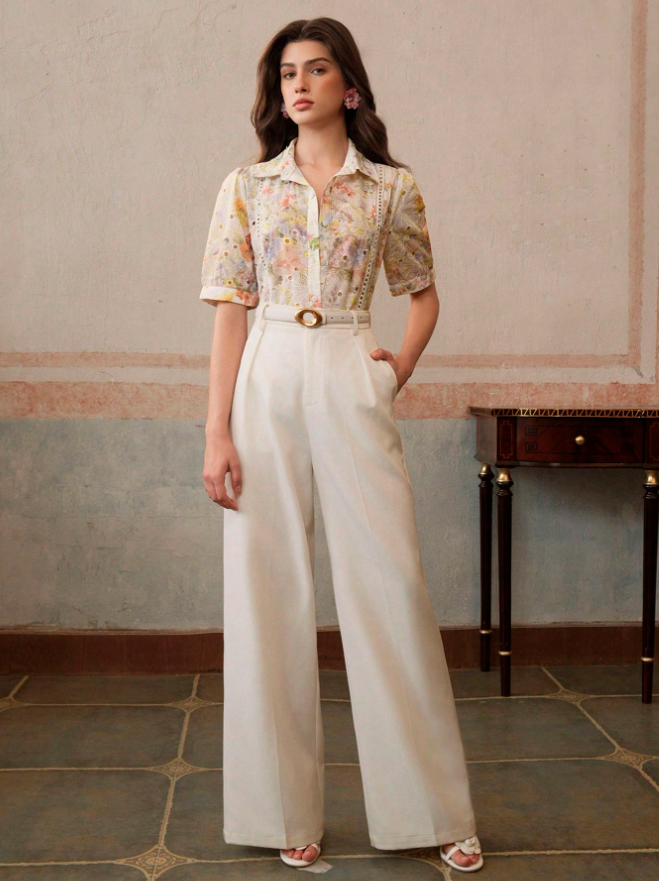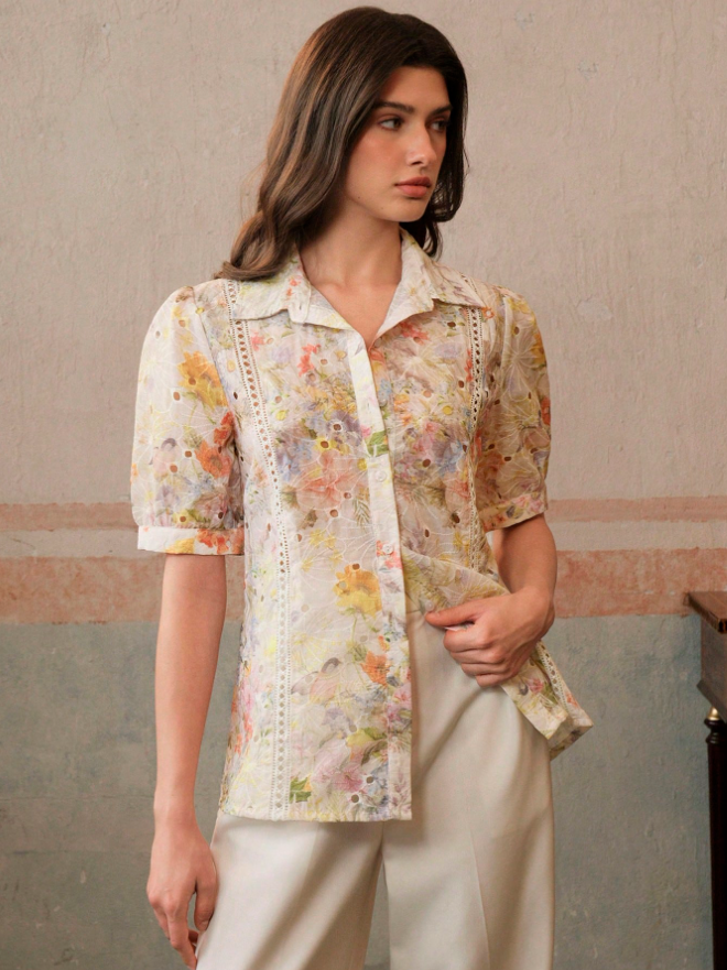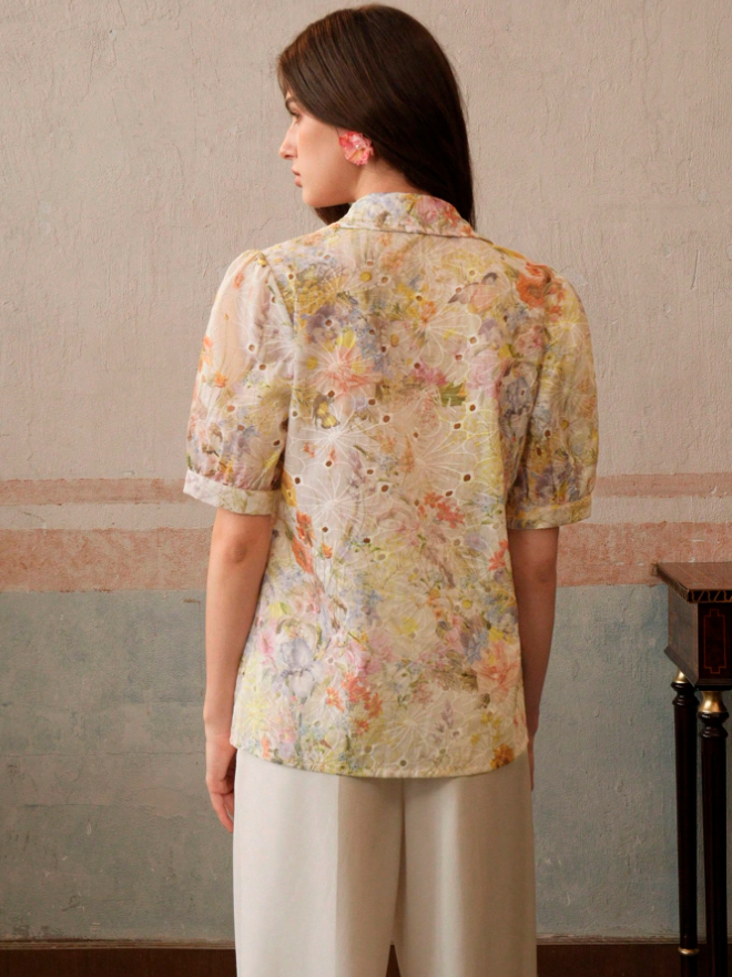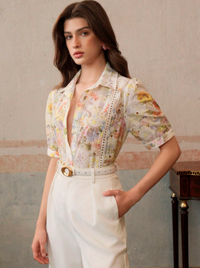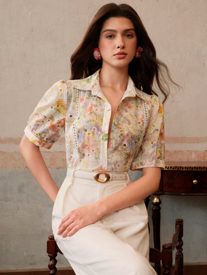 Summer Printed Cotton Embroidery Elegant T-Shirt For Ladies