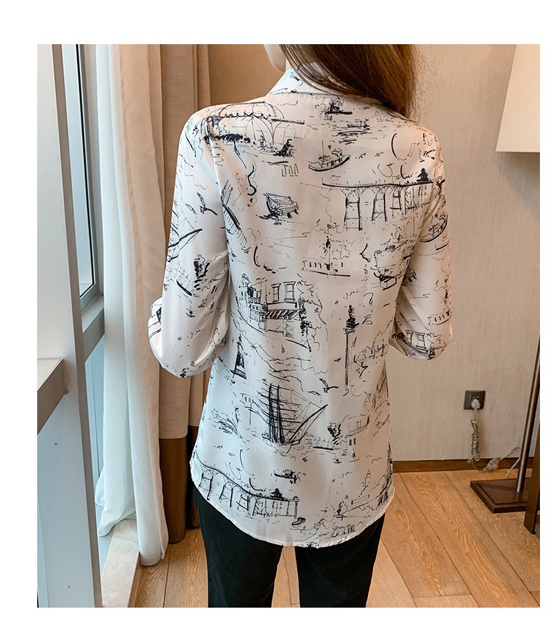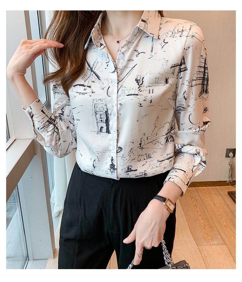 Ladies Spring Autumn Printed Chiffon Elegant Shirt