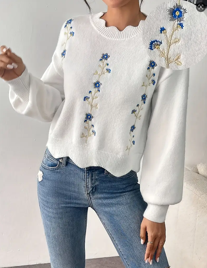 Women's Embroidered Knitting Tops Casual Custom Sweater