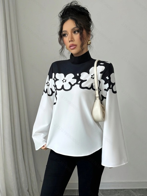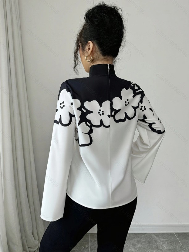 Ladies Spring Printed Thick Chiffon Elegant Shirt