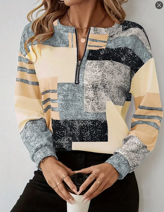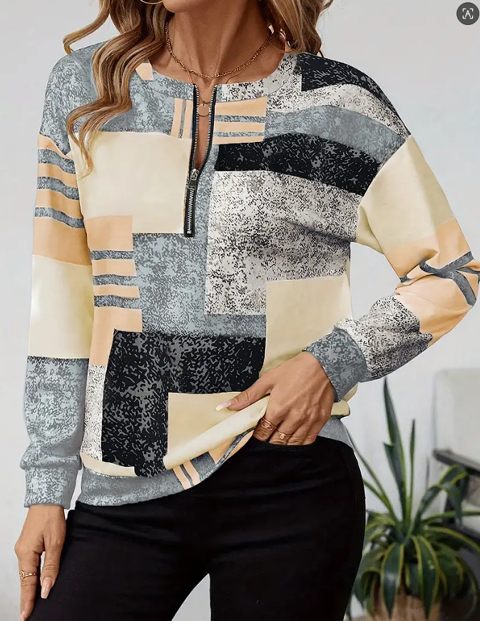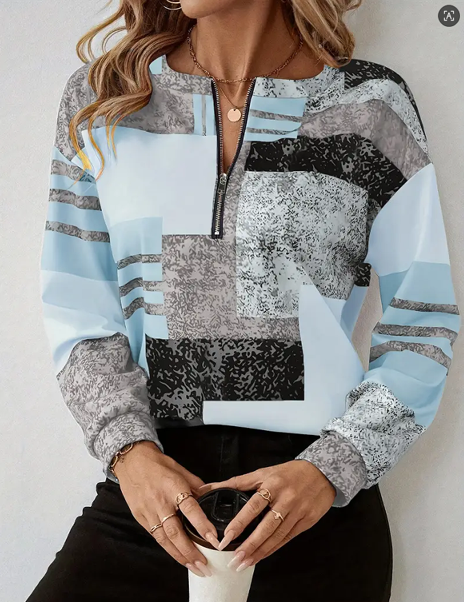Ladies Printed Cotton Elegant Office Blouse With Zipper