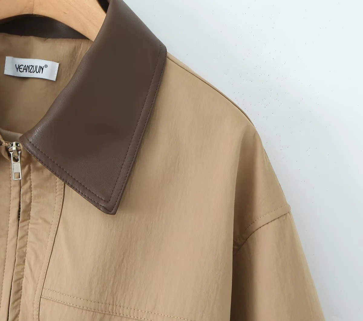 Elegant Women Suit Coat Long Sleeve Office PU Collar Jacket