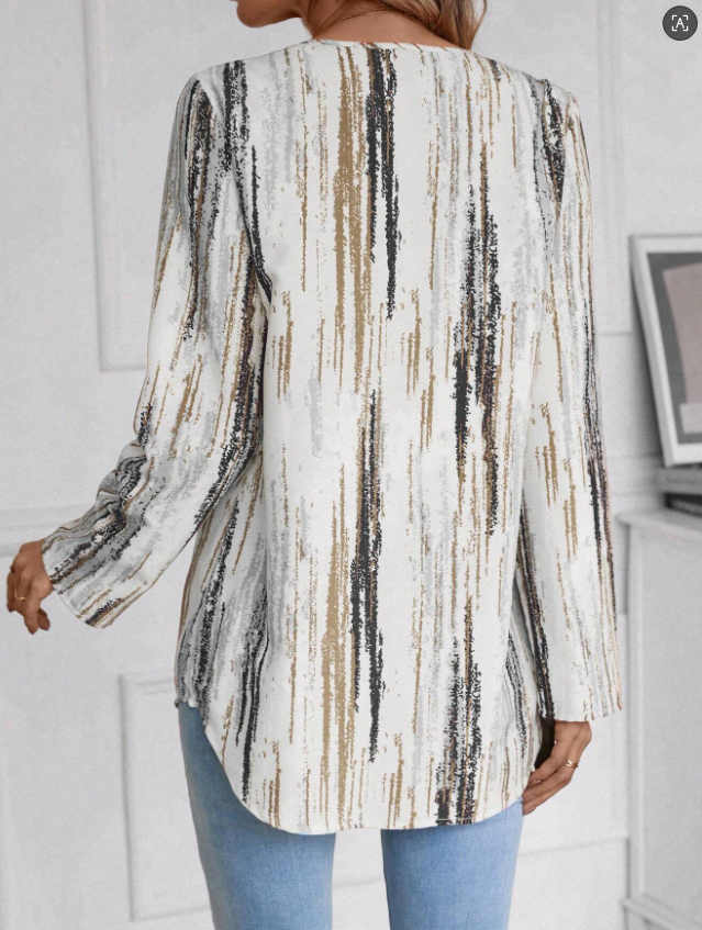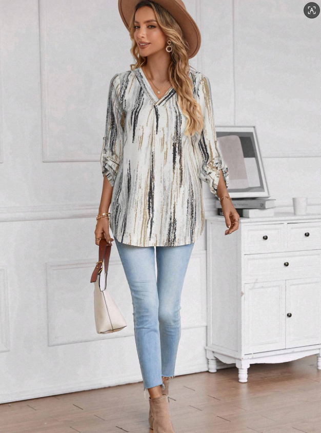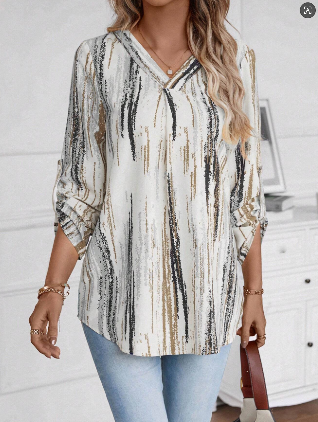 V Neck Printed Viscose Elegant Office Shirt For Ladies
