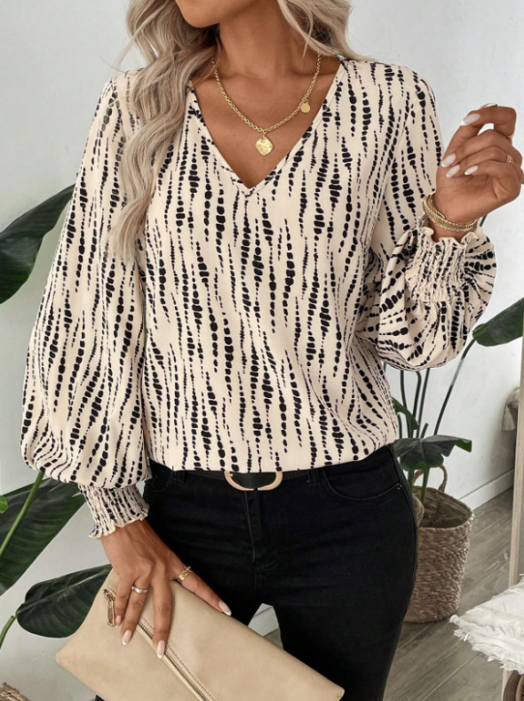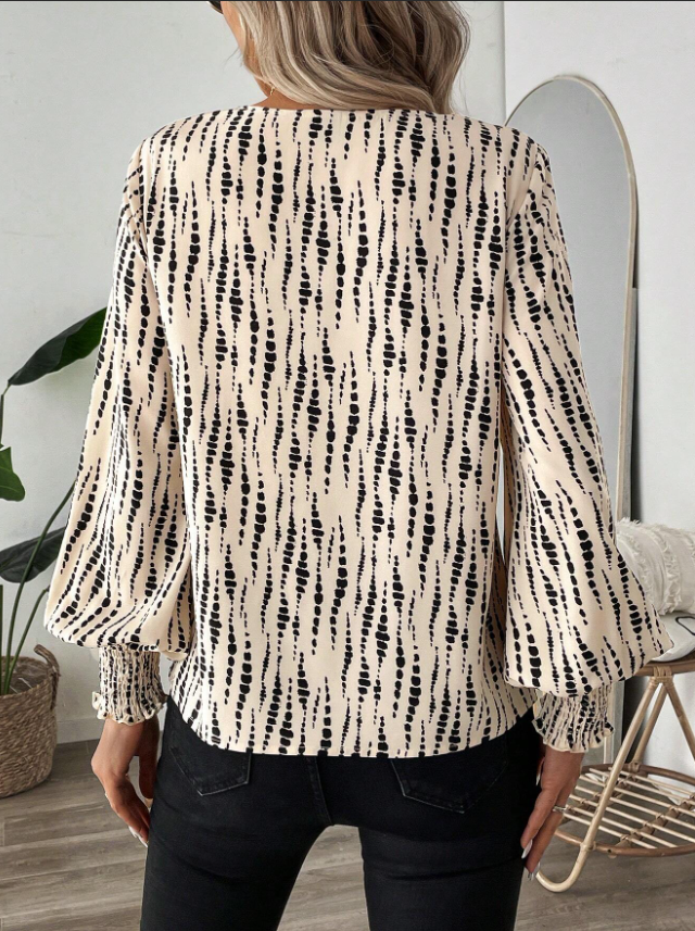 Polka Dots Printed Chiffon Office Shirt Smocking Cuffs